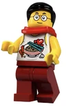 - A poster of a character resembling the Infomaniac from the LEGO Island games.