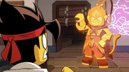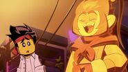 MK contacted Monkey King, telling him all his mastered abilities and accomplishments in his training. Monkey King swiftly congratulated him, telling him he should master his shrinking ability next. Monkey King ended the conversation, stating his "masseuse" was waiting for him, before leaving MK to figure out his shrinking ability.