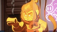 Azure Lion utilized astral projection to contact Mei and MK in the Scroll of Memory. He told them the way to free their friends in the scroll. He was confident in their abilities, before being cut of by MK undressing.