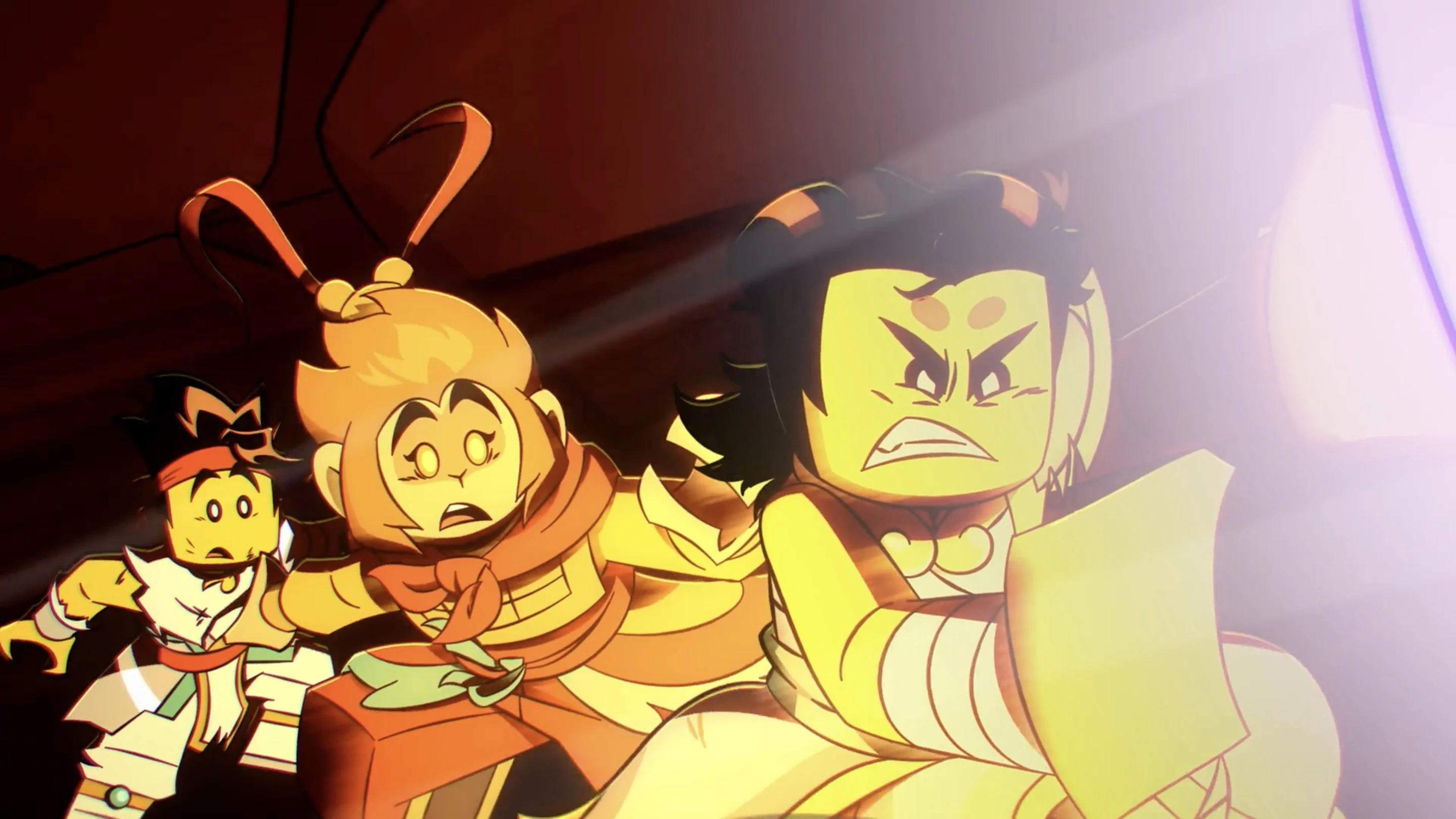 As soon as the battle began, Peng faced Macaque in a one-on-one confrontation. They couldn't help but feel disgusted by Macaque's decision to fight alongside the Monkie Kids. In an attempt to understand Macaque's loyalty to the Monkey King, Peng wondered if there was anything the Monkey King could do to make Macaque abandon his allegiance. Macaque, however, made it clear that he had never liked Peng from the start. With a swift motion, he conjured a portal, through which Mei arrived. Utilizing her Dracokinesis, Mei launched an attack on Peng, who skillfully blocked it. In the meantime, Pigsy, Tang, and Sandy made every effort to steer clear of any confrontation with Yellowtusk, who possesses a deep understanding of the imminent annihilation of the universe. However, despite this knowledge, Yellowtusk remains loyal to Azure Lion due to their unbreakable bond as sworn brothers.