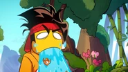 A fish was slapped into Mei's face as she made her way through the sinking Team Dronecopter. Tang later emerged from the pooling water with a fish flopping on his head. Before Macaque faced off against the Dragon of the East, a school of fish swam behind him.