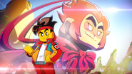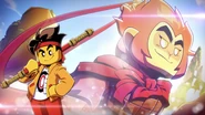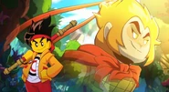 Qi Xiaotian - The clerk of Pigsy's Noodles and the noodle delivery man, he loves listening to the story of "Journey to the West", and worships Sun Wukong. He became Sun Wukong's "chosen one" by accidentally obtaining the golden staff, and reshaped himself in the battle with the Demon Bull King, beginning a new generation of mythical heroes.