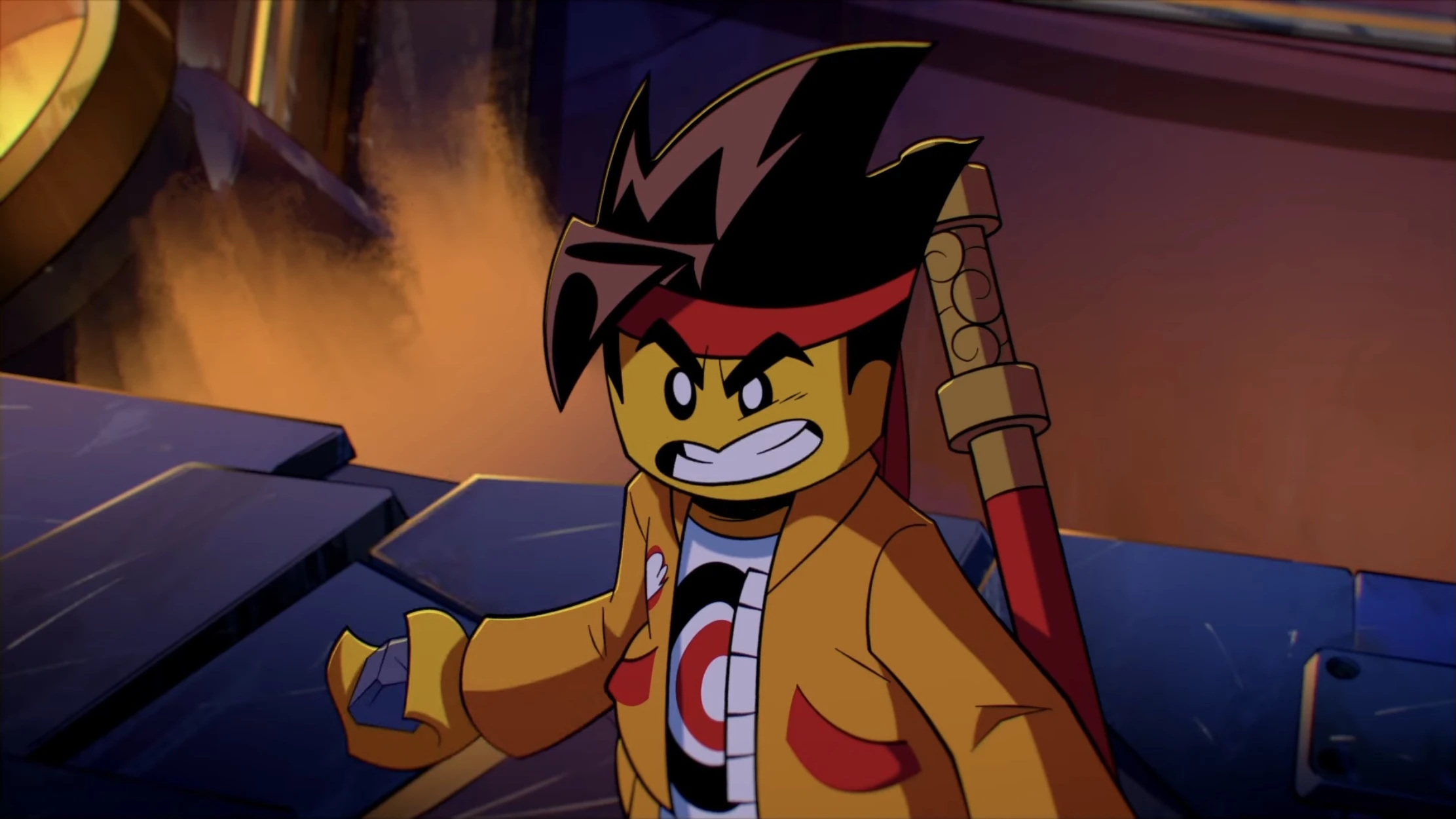 Like the real MK, the Backup Clone has spiky black hair with a red bandana around it and wears an orange jacket with a smiling monkey face on the back, as well as a white shirt with a black, white, and red circle in it and red pants with black and white boots.