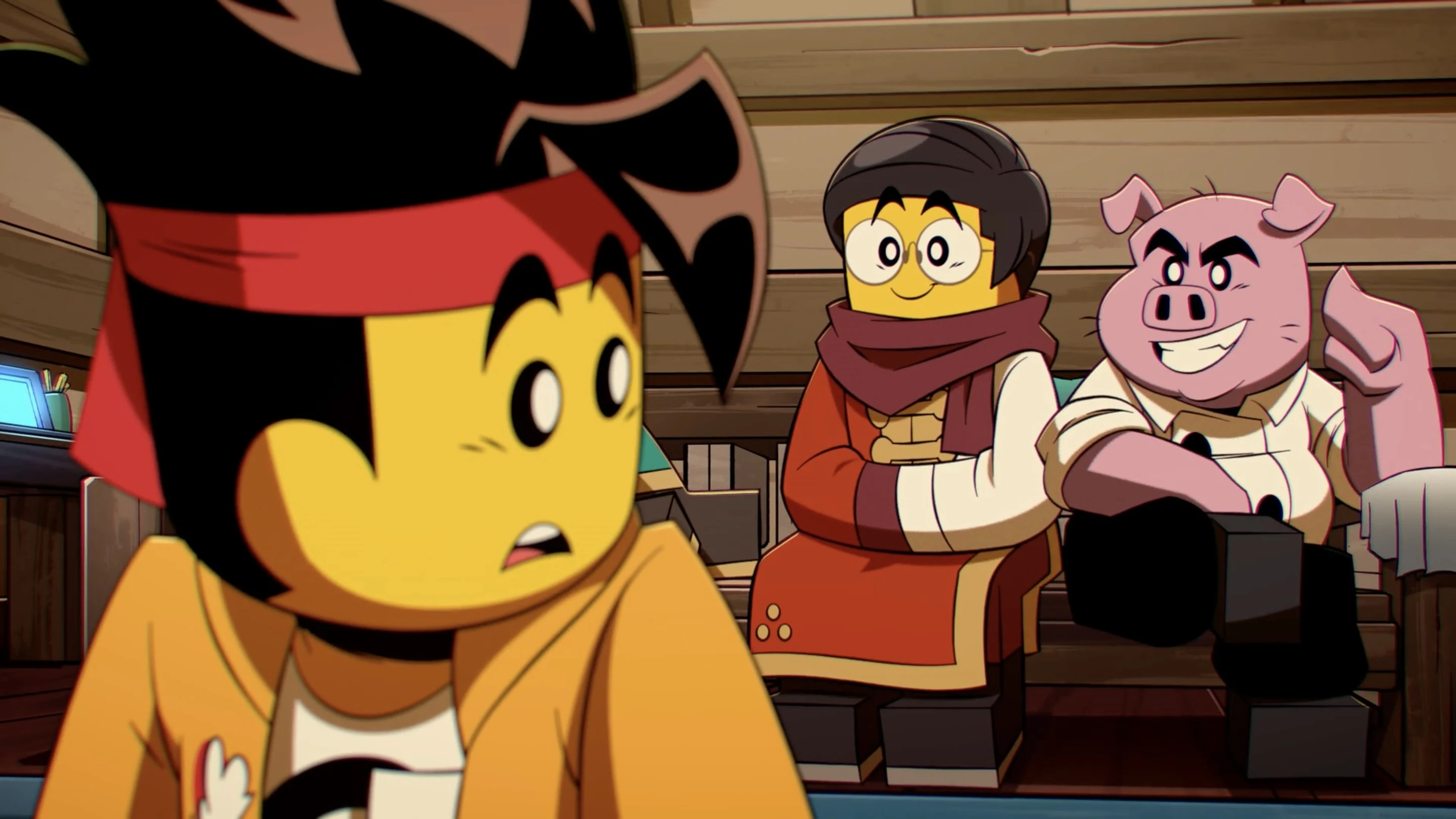 Pigsy and the Monkie Kids were at the training grounds of Flower Fruit Mountain, engaging in a sparring session with Monkey King. The purpose of this session was to enhance their combat skills and become more proficient in their abilities. MK and Mei gained Power-up armor thanks to their Golden Staff and Dragon Blade. However, Pigsy felt disheartened as he did not receive any armor. Mei explained that Pigsy would receive his armor once he proves himself worthy of it. Initially, Pigsy agreed with this notion, but his mood quickly changed when he discovered that Mei was making fun of him for receiving star stickers from Master Subodhi before she did. Mei playfully suggested that he should be careful not to have his ancestral weapon taken away, which only served to further infuriate Pigsy.