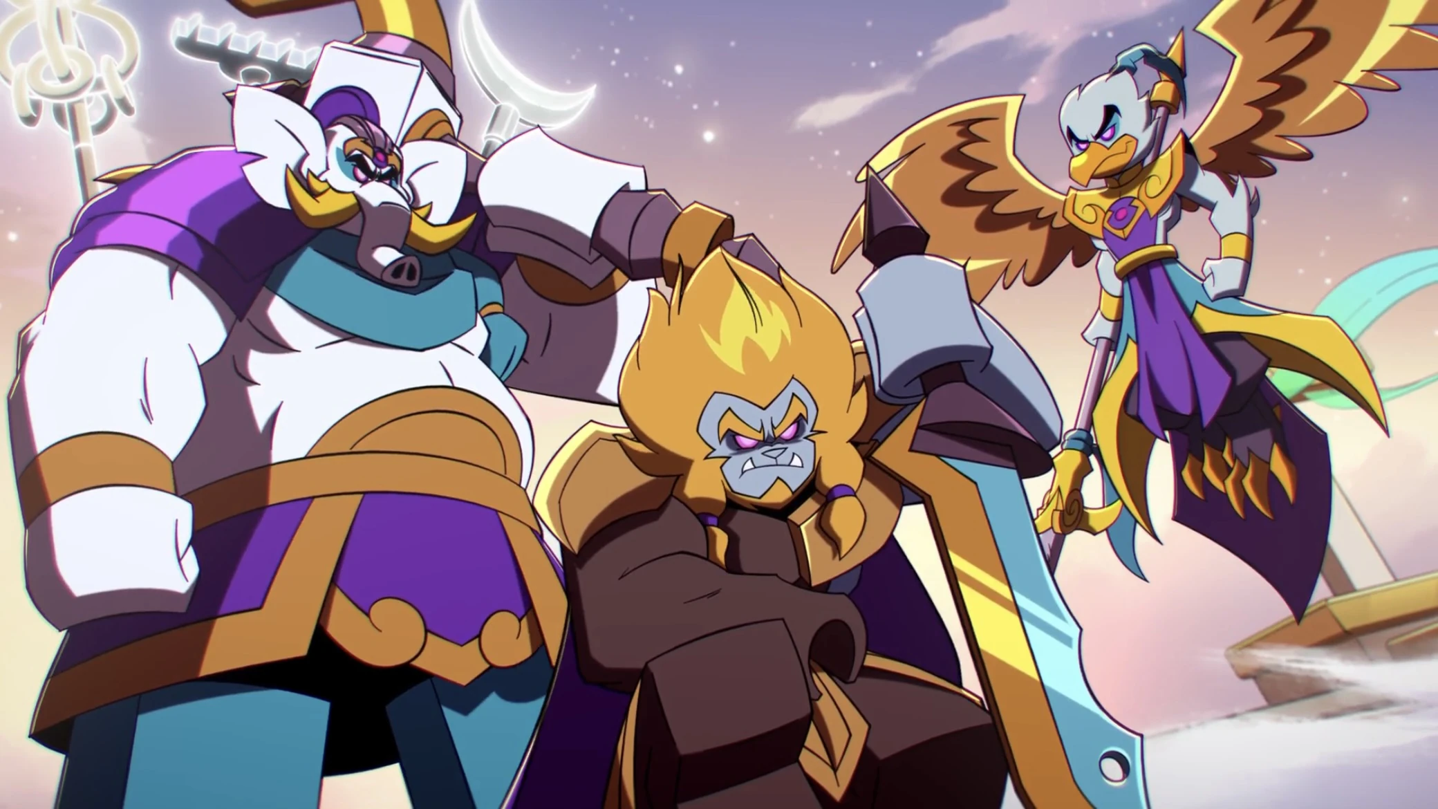 After the Jade Emperor's dethronement, the Brotherhood implemented their plan to create a superior world. Unfortunately, their hasty removal of the Jade Emperor and underestimation of his power caused Azure to struggle with his newfound abilities, leading to a devastating impact on his body and pushing the universe to be destroyed. The Brotherhood suspected that Monkey King's presence was hindering Azure's progress, prompting them to launch an attack on the Monkie Kids, Monkey King, and Macaque at Flower Fruit Mountain with the intention of eliminating the Monkey King.[6]