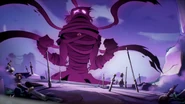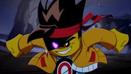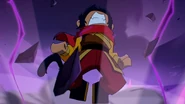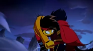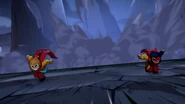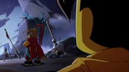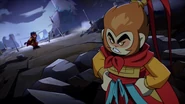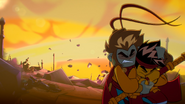 Under the guise of training him, Macaque lead MK to Warrior Mountain to fight the Smoke Monster, where MK's powers were quickly stolen. Macaque trapped MK against the mountain using the Golden Staff and taunted him. Monkey King and Macaque engaged in a battle, which damaged some parts of the mountain.