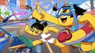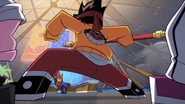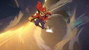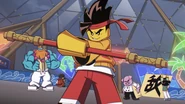 However, after the Monkey King limited MK's powers, the latter was able to defeat Red Son and the Bull Clones. After defeating Red Son, MK restored the weather back to the way it was and tells the others that he'll practice more until he gets better control of his powers.